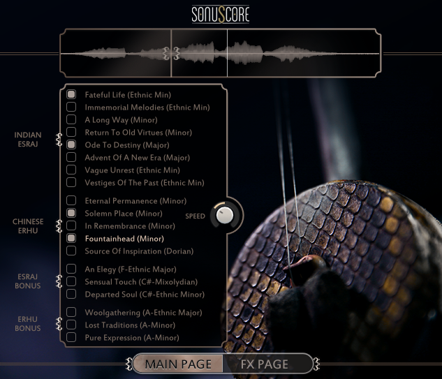 To merge the powers of both traditional and phrase-based sampling, Erhu legato und Esraj sustain instruments have been included. They can be used to either to connect or to advance existing phrases, or even to craft your own ones. Be prepared to implement your creative vision with ease into your scores.