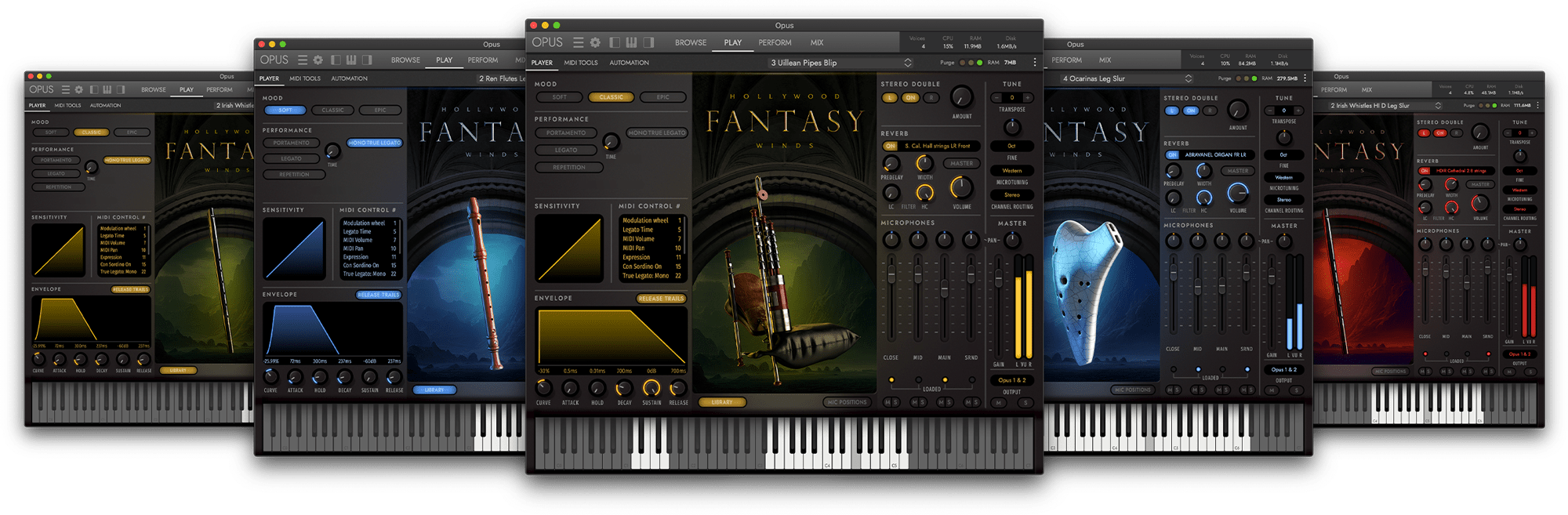 Hollywood Fantasy Winds presents an array of ethereal, majestic woodwind instruments that transcend the modern orchestra, complete with true legato and a wide variety of articulations to command the realism and power you need in a cinematic ensemble of winds. With this collection, you can paint detailed images of Celtic highlands, sprawling mountain ranges, enchanted forests, and any other fantasy settings you can possibly imagine. These winds complete the core orchestral trinity with lyrical strings and brilliant brass, giving you the texture you need to complete a true melodic fantasy ensemble.