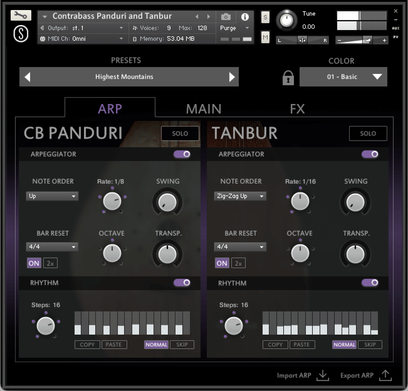 The presets were designed with a certain realism in mind, reflecting how they would be played, to truly showcase the inspirational beauty of the two instruments. They are divided into two main categories: Normal and Odd. Normal provides 4/4 arpeggios where Odd explores then such diverse time signatures as 5/8, 7/8, 3/4, and more.